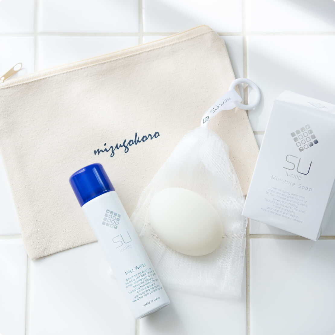 素から輝くみずみずしい肌づくりをサポートするブランド SU lucilleのスキンケアアイテムとオリジナルポーチが セットになった限定キット。